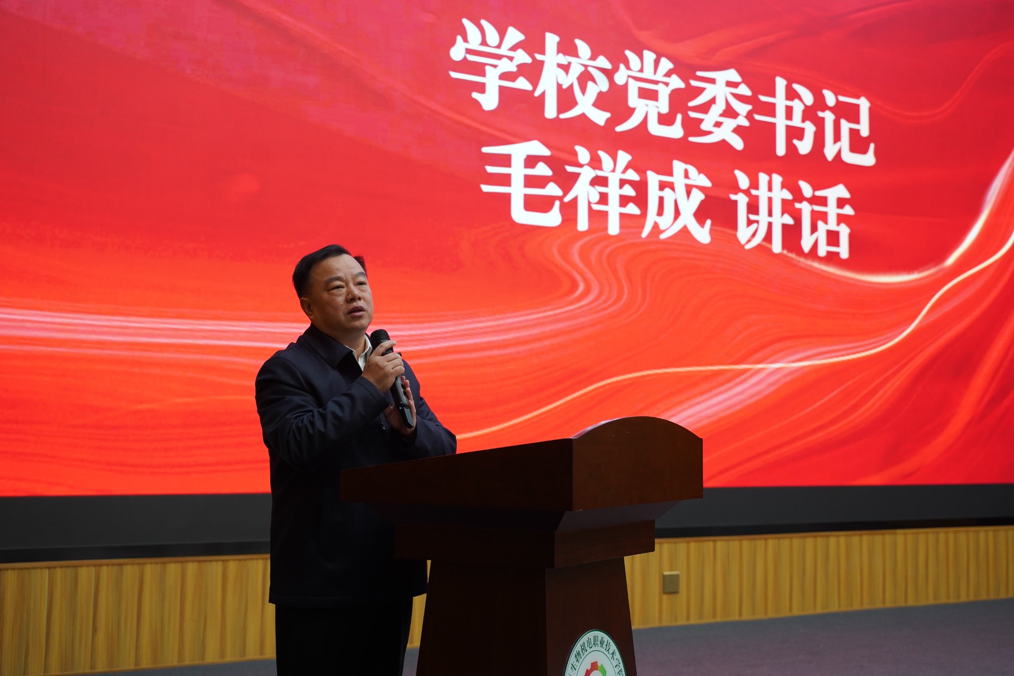 学校党委书记毛祥成作了讲话,向受到表彰的先进集体和个人表示热烈祝贺,向长期以来关心支持学校发展的家长和校友致以崇高敬意,向坚守育人一线的教职员工表示衷心感谢,并向勤学奋进的全体同学致以亲切问候他也勉励此次未获表彰的同学保持信心、持续努力。他指出,学生工作要聚焦四个维度精准发力:一是在思想引领上再深化,筑牢信仰根基;二是在成长服务上再优化,促进学生全面发展;三是在队伍建设上再强化,提升专业能力;四是在工作机制上再创新,激发工作活力。他强调,全校师生要深刻领会习近平总书记对青年一代的殷切期望,将“坚定理想信念,厚植家国情怀,练就过硬本领,发扬奋斗精神”作为人生追求。他号召全体师生、家长和校友携手共建育人共同体,凝心聚力,共同开创学校高质量发展的新局面。