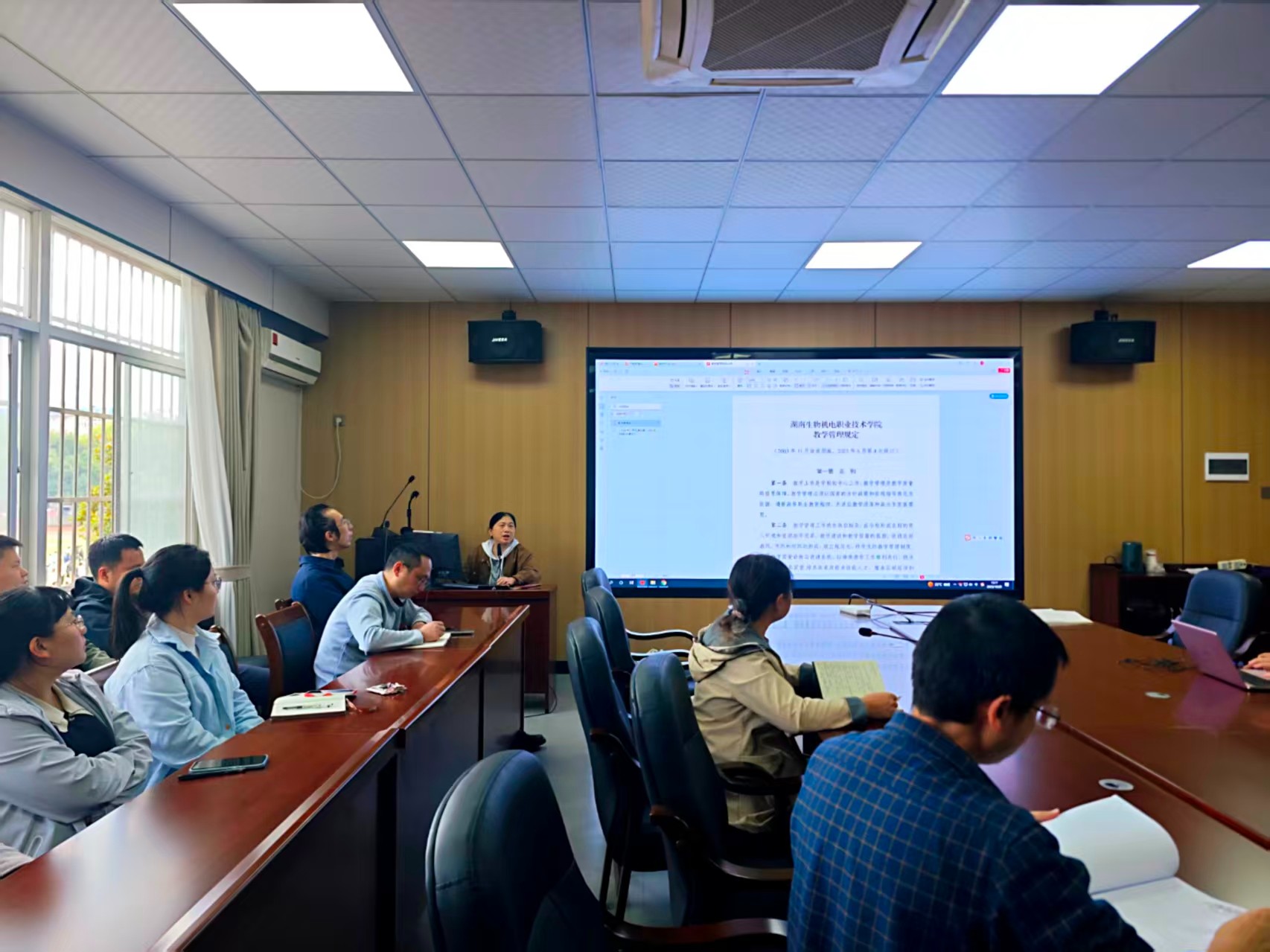 教研室主任申静领学《教学质量工程项目建设管理办法》《科研管理办法》《技能竞赛管理办法》《实习实训管理办法》《高校教师系列专业技术职称高级任职资格量化》《产教融合管理办法》等制度。使全体教职工对学校教学质量工程项目建设、科研管理、产教融合管理、学生实习实训管理等有了更清晰的认识,为更好地开展相关工作提供了明确指导。