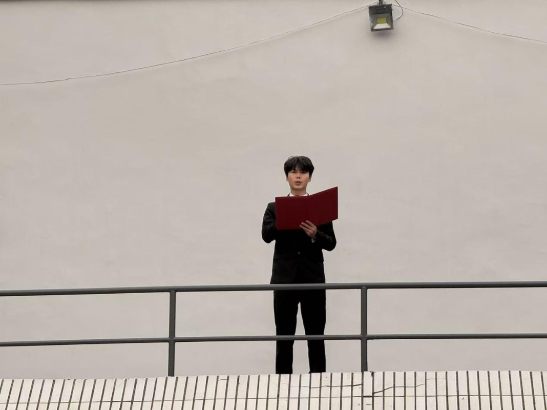 学院学生会主席、新能源24303班陈熙同学作为学生代表发言。他以"擎旗怀匠心,逐梦赴新程"为主题结合党的二十届四中全会精神展开演讲,号召同学学好专业课、练实操技能,以专业之力响应国家需求。