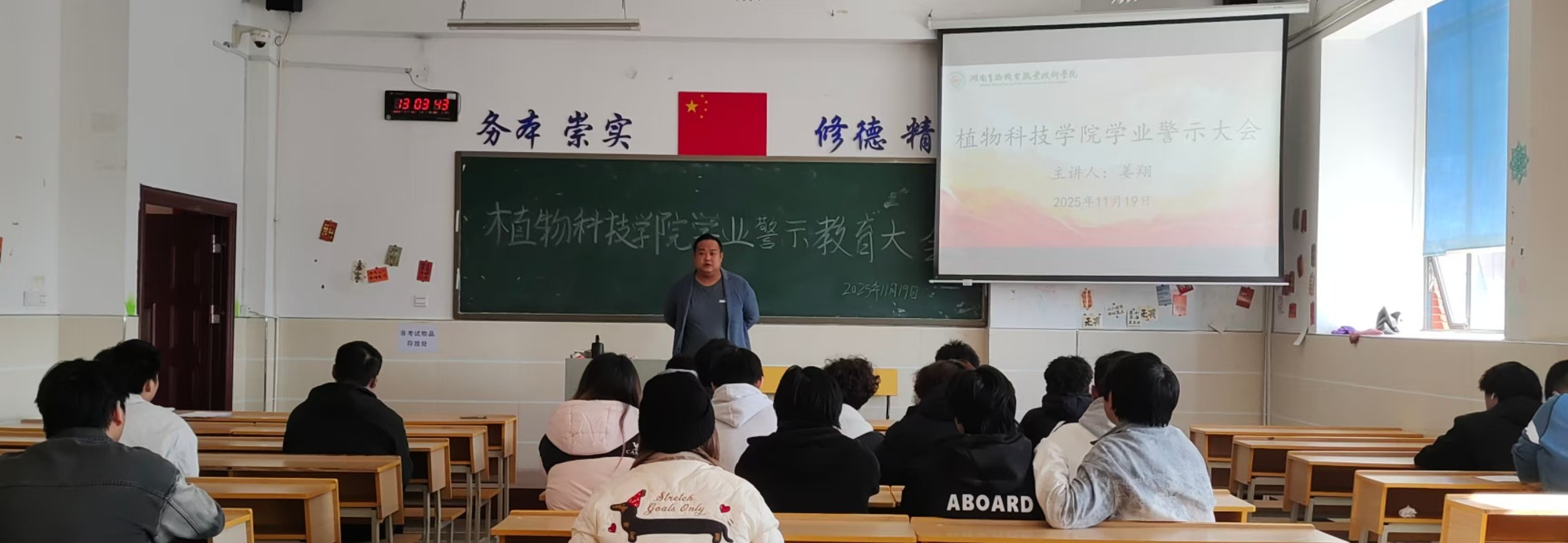 11月19日中午,植物科技学院在知新楼403教室举办2025年度学业警示教育大会,学工办姜翔老师为收到学业预警的学生开展专题辅导,助力同学们找准学业问题、制定提升方案。