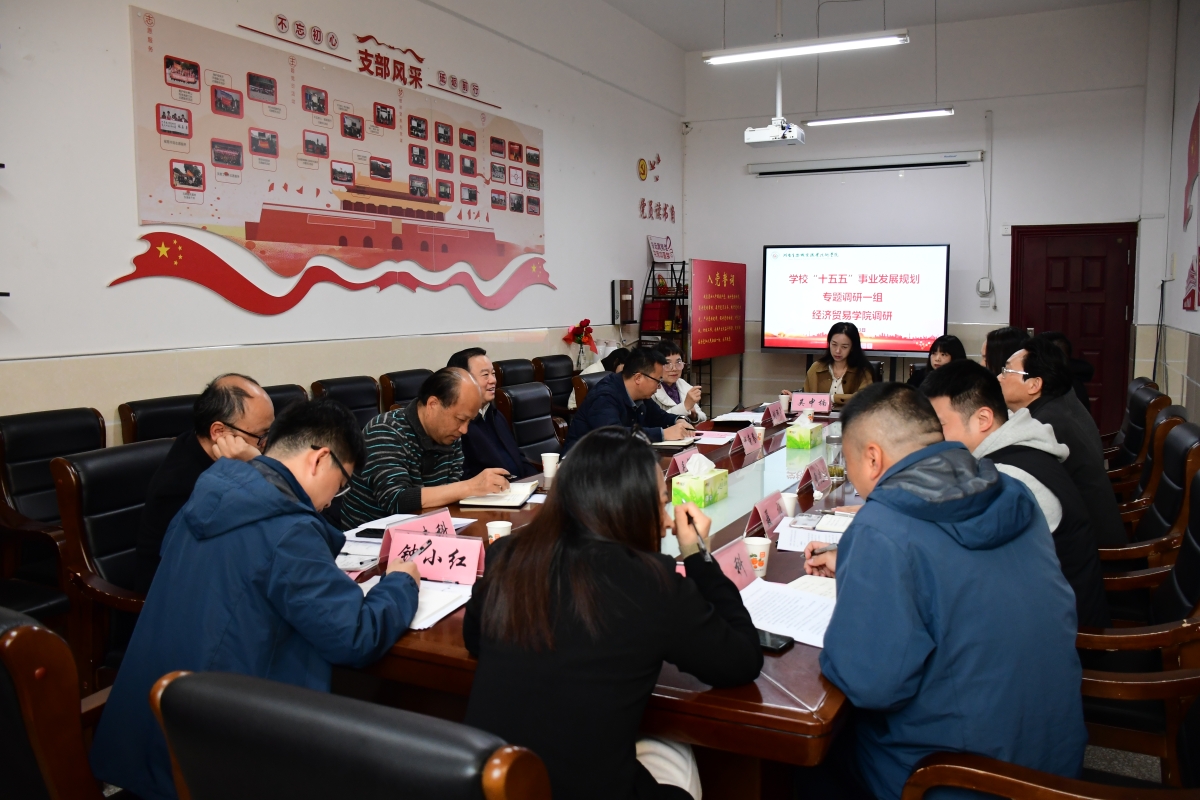 2025年12月3日上午,学校党委书记毛祥成率队前往经济贸易学院,就学校"十五五"事业发展规划进行专题调研。副校长何荣誉、处长王少华、处长刘羽平、副处长黄建科等陪同调研。