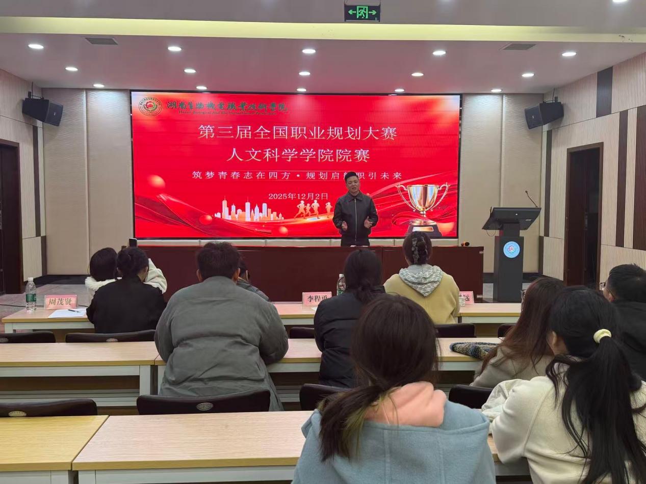 为深度探索学生的自我认知,明确职业发展方向,帮助学生理性、科学性地进行职业规划,实现高质量的就业。12月2日下午人文科学学院举办第三届全国职业规划大赛院赛,担任本次大赛的评委老师有人文科学学院党总支副书记李程勇、团总支书记刘晓萌、学工办老师任科英、刘思远、沈俊霖和就业专干周茂贤。