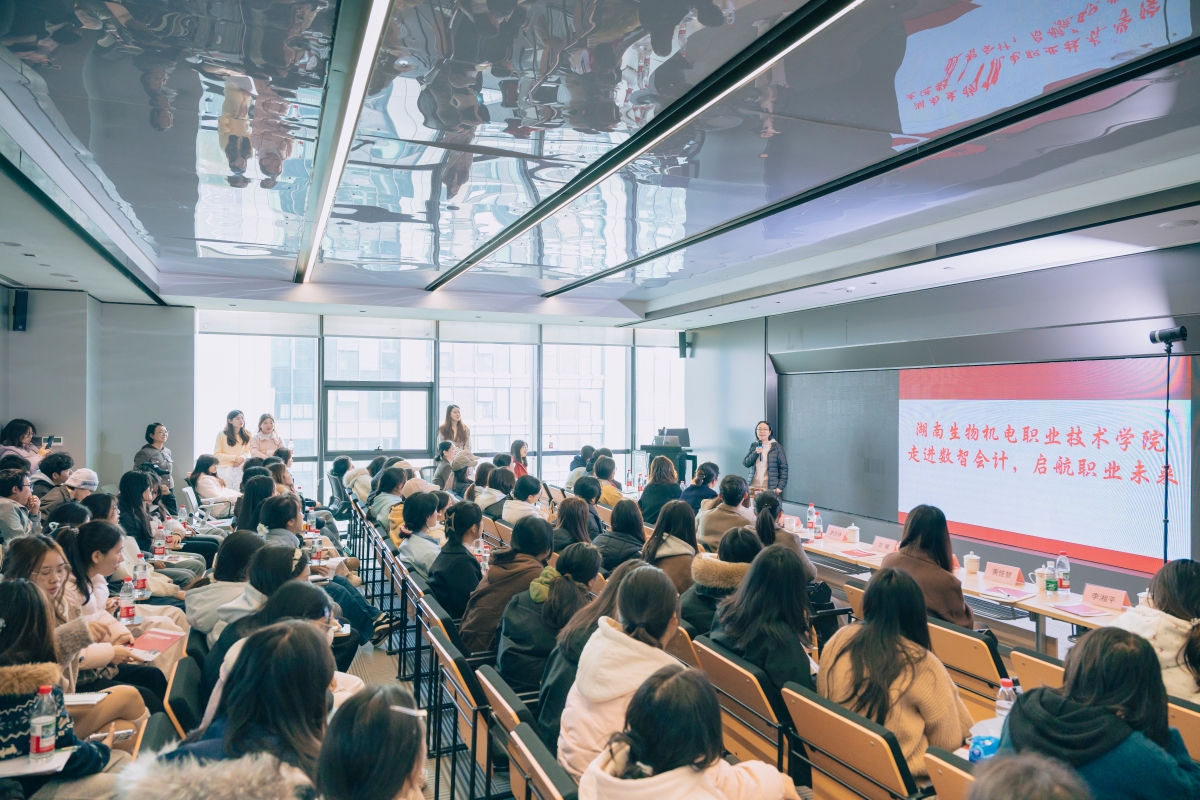 在随后的专题分享环节中,事务所业务骨干游朝围绕"大洞见财智未来:大数据会计岗位认知与AI审计前沿"主题,系统解读了数智时代财会行业的发展趋势与职业前景。她指出,在数字经济加速发展的背景下,数智会计已成为财会行业转型发展的核心方向,企业数智化系统正深刻赋能财务流程、提升工作效率。我校优秀校友会计19343班刘思琳则以"审计小白的入门成长故事"为题,分享了从校园到职场的适应历程与心得体会,为学弟学妹们提供了实用建议,其亲切真实的讲述引发了在场学生的强烈共鸣。