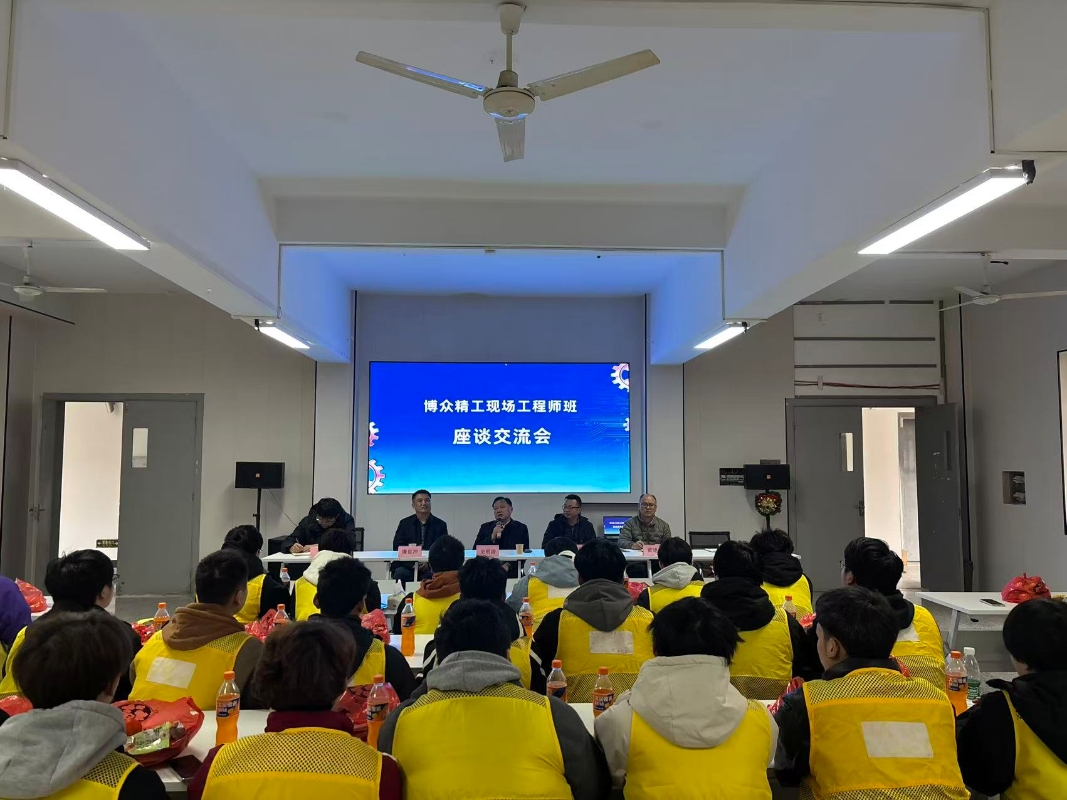 交流会上,廉良冲首先介绍学校与博众精工"现场工程师"班的创新人才培养模式,重点说明该培养模式在产教融合、校企协同育人方面的核心思路,并询问了同学们对该培养模式的适应程度与改进建议。